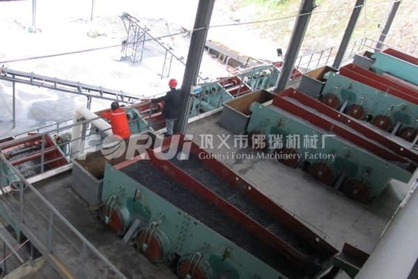 Secondly, the selection of screening equipment should also meet the requirements of the feed size of the jig machine. The range of particle size that the jig machine can handle is 0-10mm, 10-30mm and 30-50mm, so the selection of screening equipment should also screen the material into the best feed size of the jig machine according to the actual situation. The screened materials should be transported to the front silo of the jigger with a belt conveyor, and an electromagnetic vibrating feeder for uniform feeding should be set below the silo.