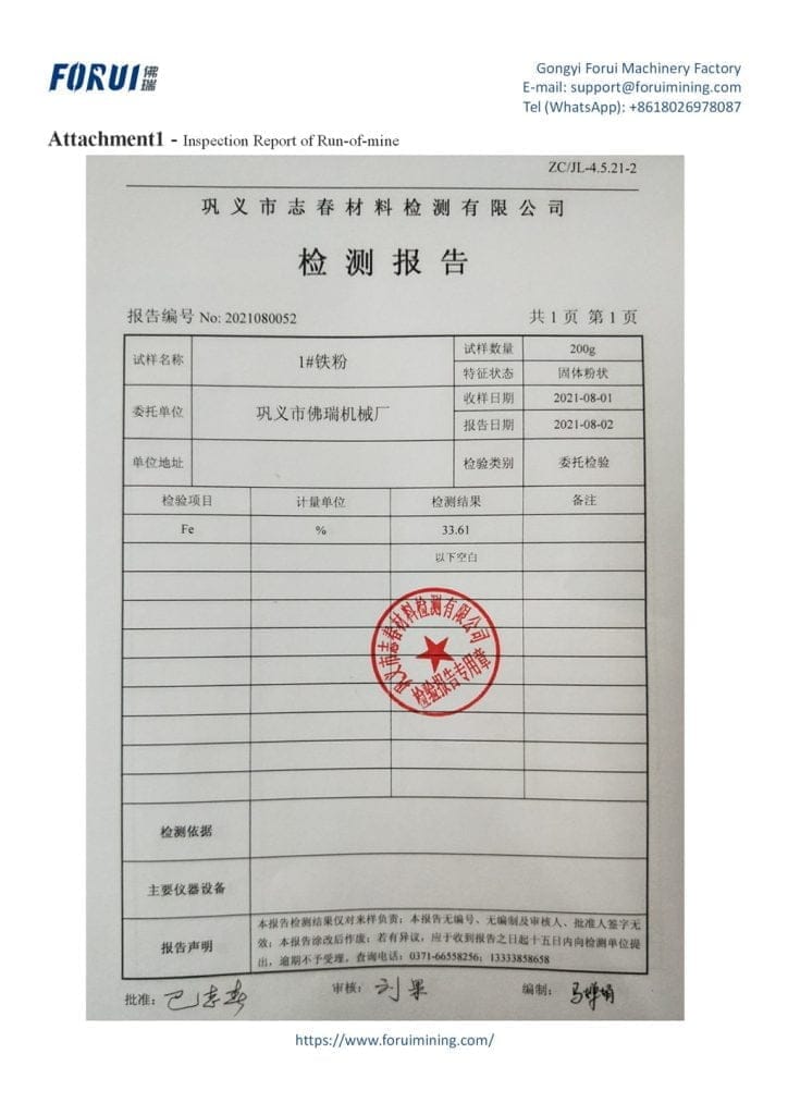 [embedyt] https://www.youtube.com/watch?v=JssloUkb_6g[/embedyt]Hello, everyone, this is Asa from Forui Machinery. The day before yesterday we received magnetite from our customer in South America. The magnetite grade is about 28-30%, and our customer asks us to improve its grade to more than 62%. Now we will do the beneficiation experiment. Let’s take a look. The beneficiation process is as follows: